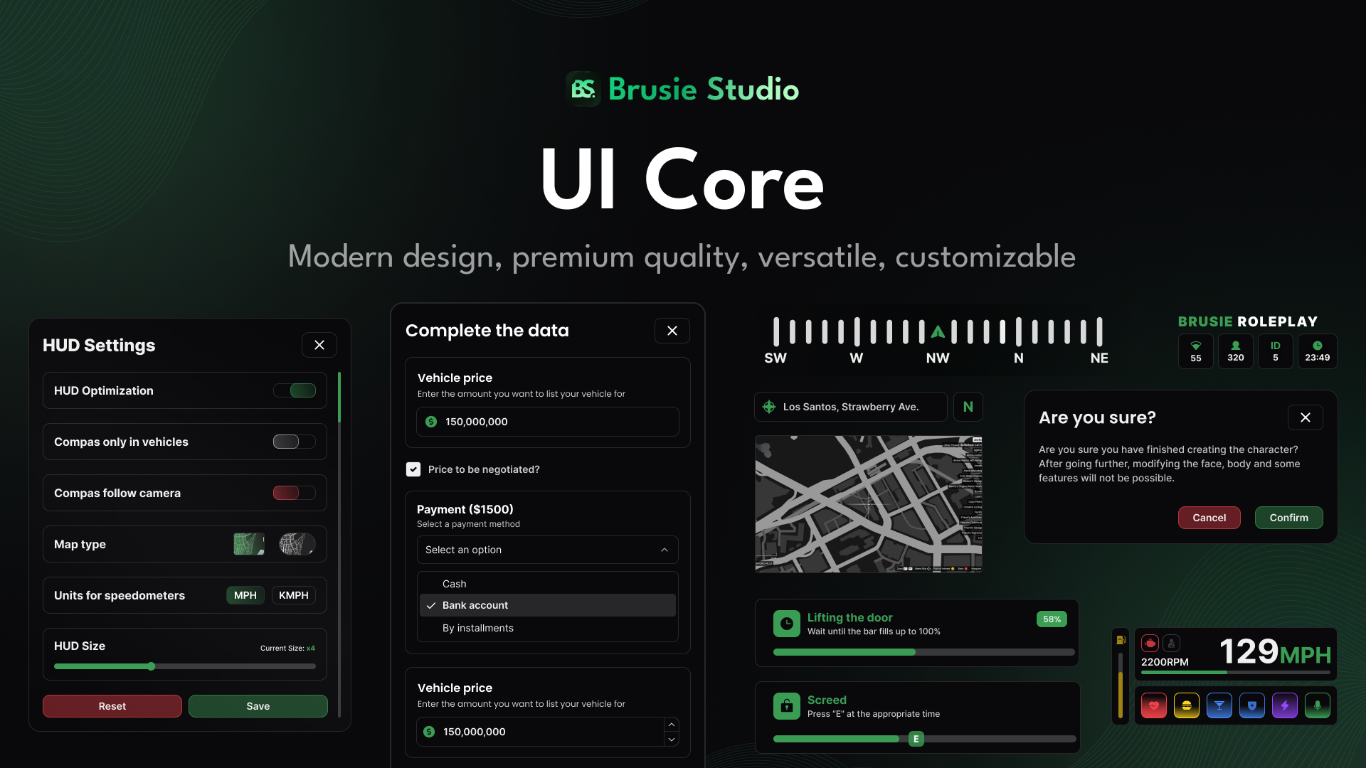 BS UI Core Introduction Welcome to the documentation for the UI Core (HUD) for FiveM! Table of Contents Installation Configuration Components Troubleshooting FAQ TroubleshootingHUD